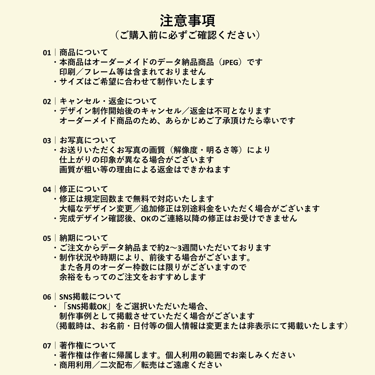 ・「日付を主役にしたい」「言葉を入れたい」などご要望を自由にお伝えいただけます